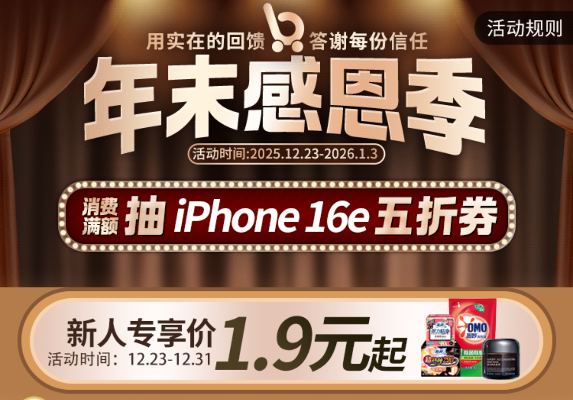 岁末将至,温情正浓。为答谢广大消费者一年来的支持与信赖,i百联正式启动“年末感恩季”特别回馈活动,以“用实在的回馈,答谢每份信任”为主题,推出涵盖数码家电、健康养生、服饰鞋包、生鲜食品等全品类的超值优惠,活动将持续至2026年1月3日。
