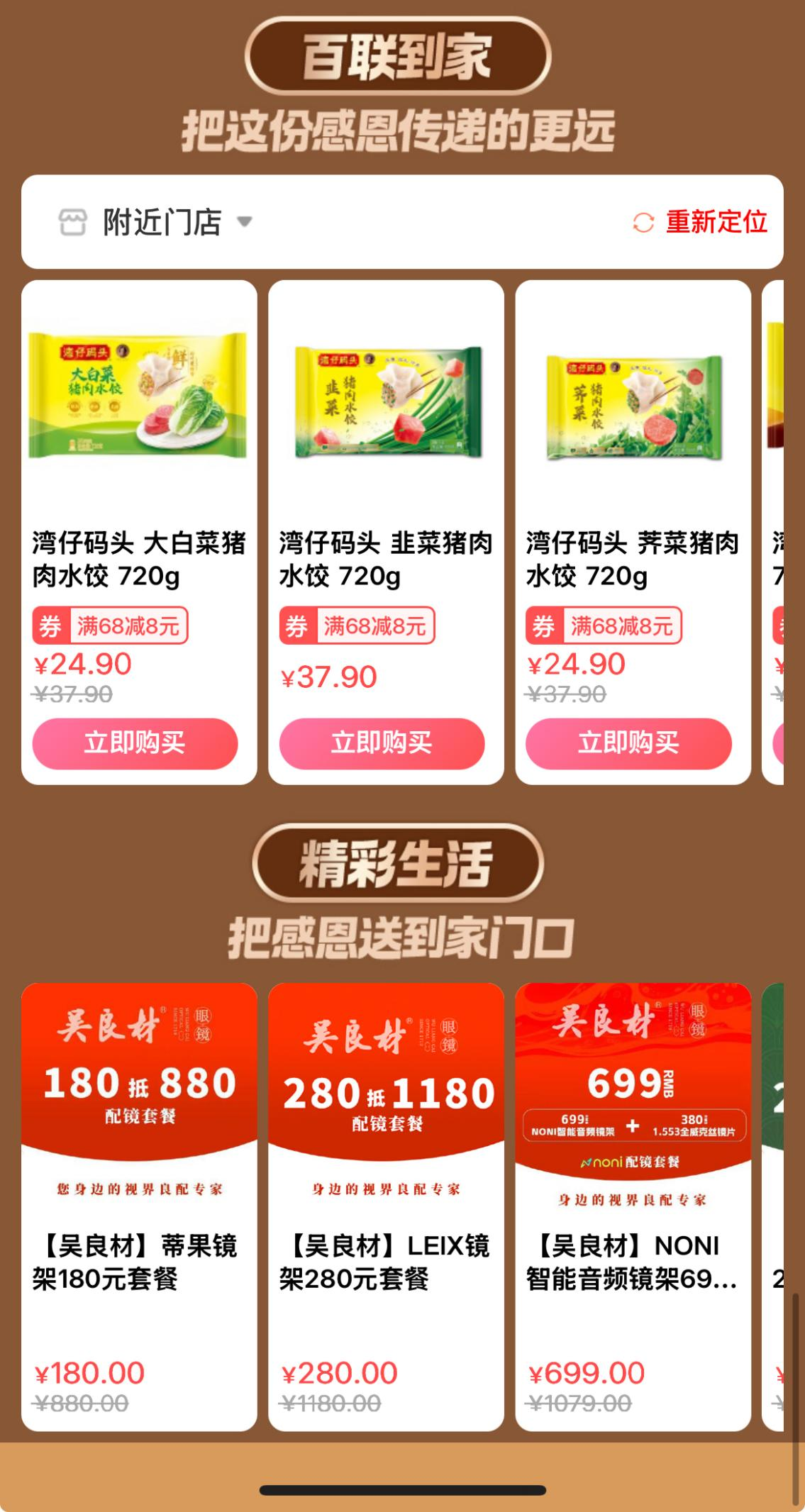 在价格回馈上,i百联拿出十足诚意,真正让利于民。阿迪达斯休闲板鞋、贺本清小甘菊洗护组合等潮流好物直享优惠,广西融安脆蜜金柑礼盒、盐池滩羊前腿等生鲜特产新鲜直达;叶黄素、蛋白粉等健康产品,鞋服箱包、家居日用等全品类商品均有补贴让利。同时,依托“百联到家”服务,i百联将优惠福利进一步延伸;并联动吴良材、茂昌眼镜等线下品牌推出专属优惠套餐,实现“把感恩送到家门口”的服务承诺。